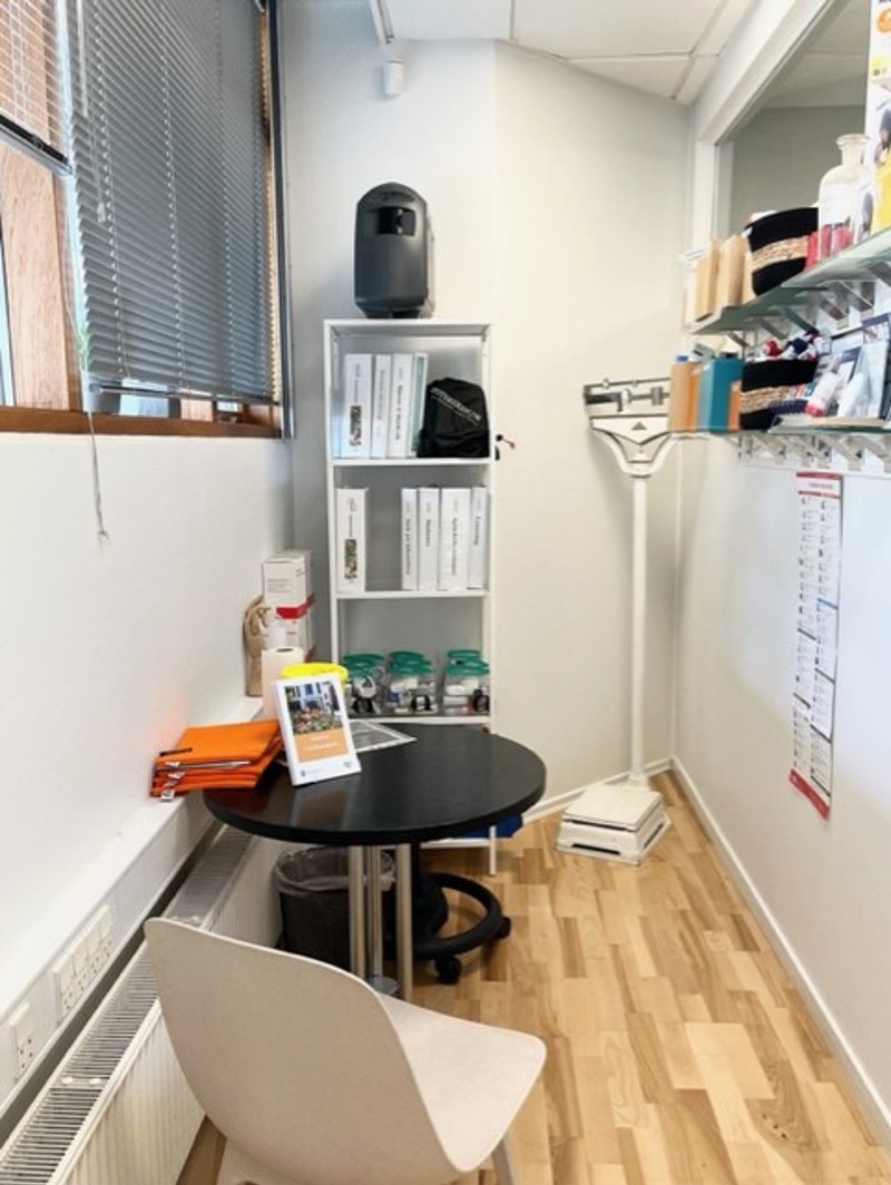 Vi har indrettet et særligt samtalerum. Her er der ro og diskretion, hvis du har brug for f.eks. en medicinsamtale eller et check af din inhalationsteknik.